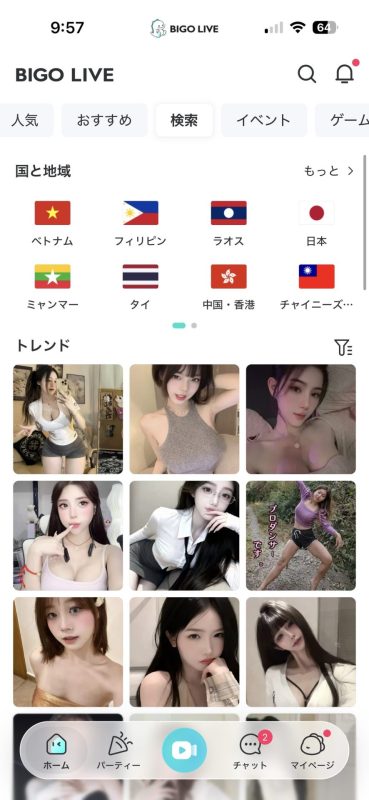 海外のビゴライブは規制が少し緩いです。露出の多い服を着ている配信者がたくさんいます。