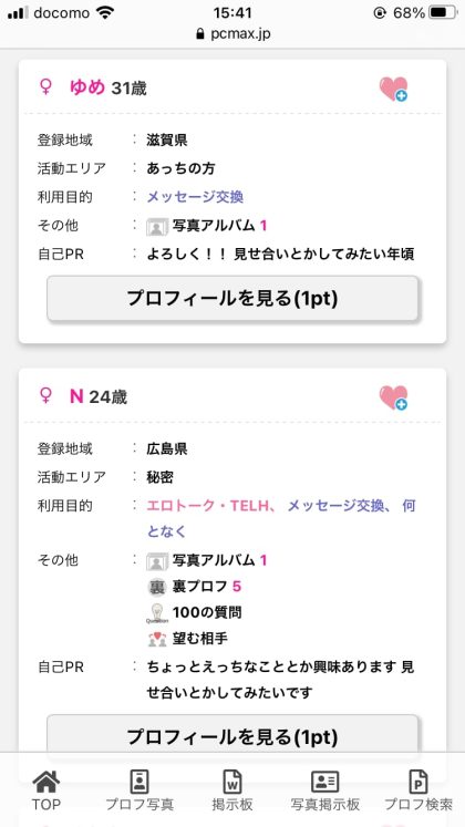 プロフ検索に「母乳」があります。母乳を出せる女性を表示できます。検索したところ671人表示されました。