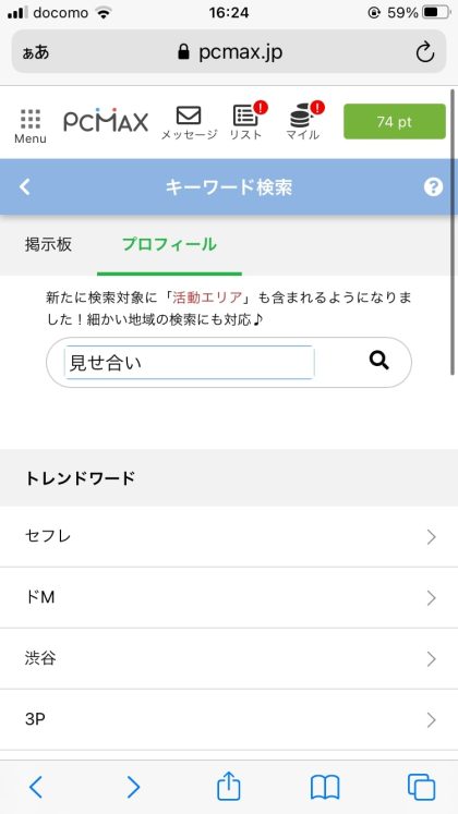PCMAXはキーワード検索機能があるので希望の相手を見つけやすいです。